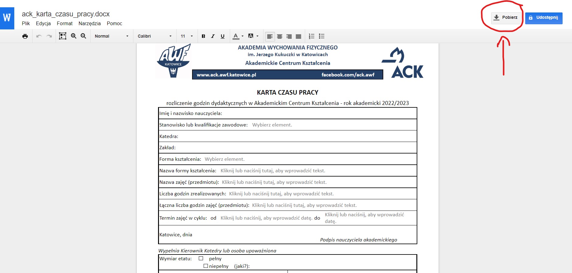 * Pliki MSword do wypełnienia pismem komputerowym (preferowane) proszę pobrać na dysk komputera. Informacje jak to zrobić można znaleźć w poradniku poniżej: